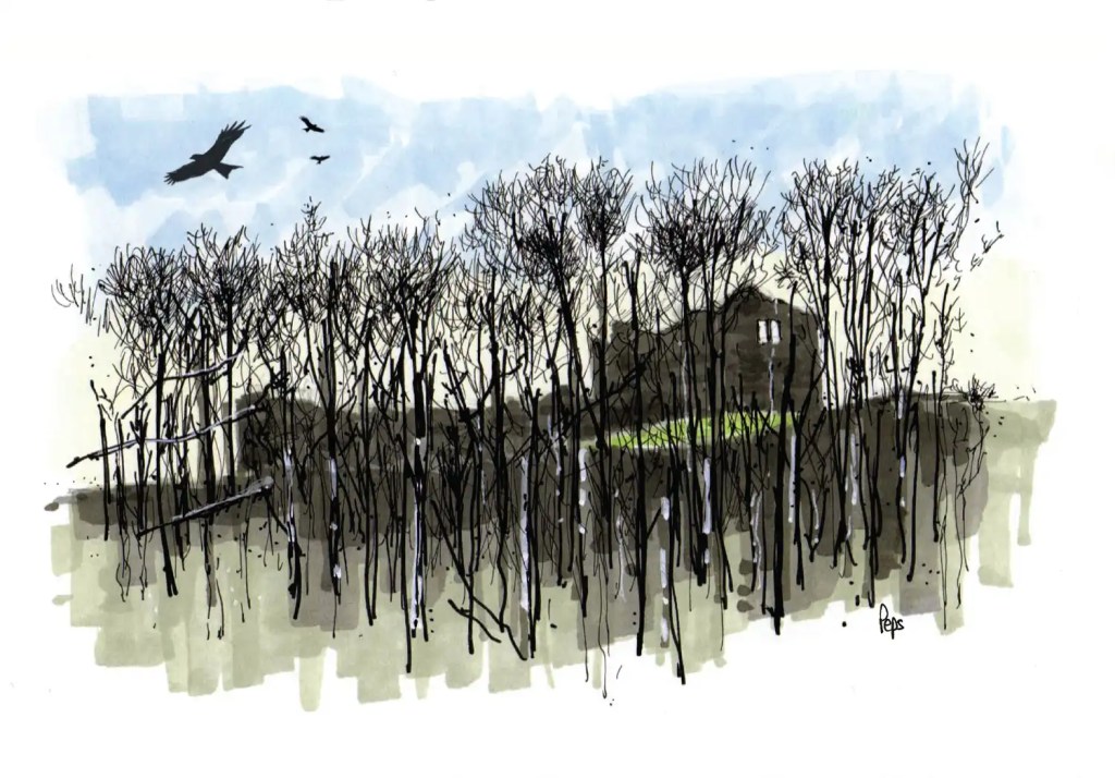 I’ve often thought that looking across the River Wharfe through the woods to Barden Tower, makes for an atmospheric view. The area is frequently visited by raptors and one morning I saw several red kites wheeling around above the trees. On a cold winter’s day it felt quite gothic!